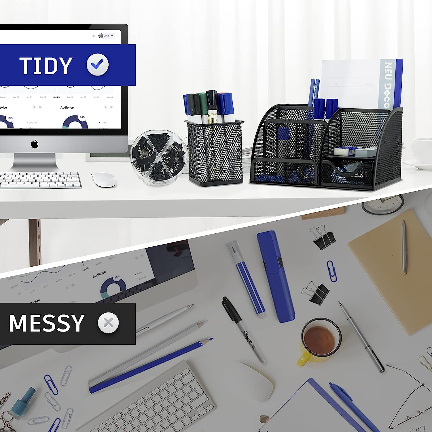 - [Office Desk Organizers and Accessories] Neudeco is proud to release our new desk organizer, perfect for all your office supplies. With multiple compartments, a drawer, paperclip holder, and pen organizer, this desk accessory is designed to keep your workspace organized and clutter-free.