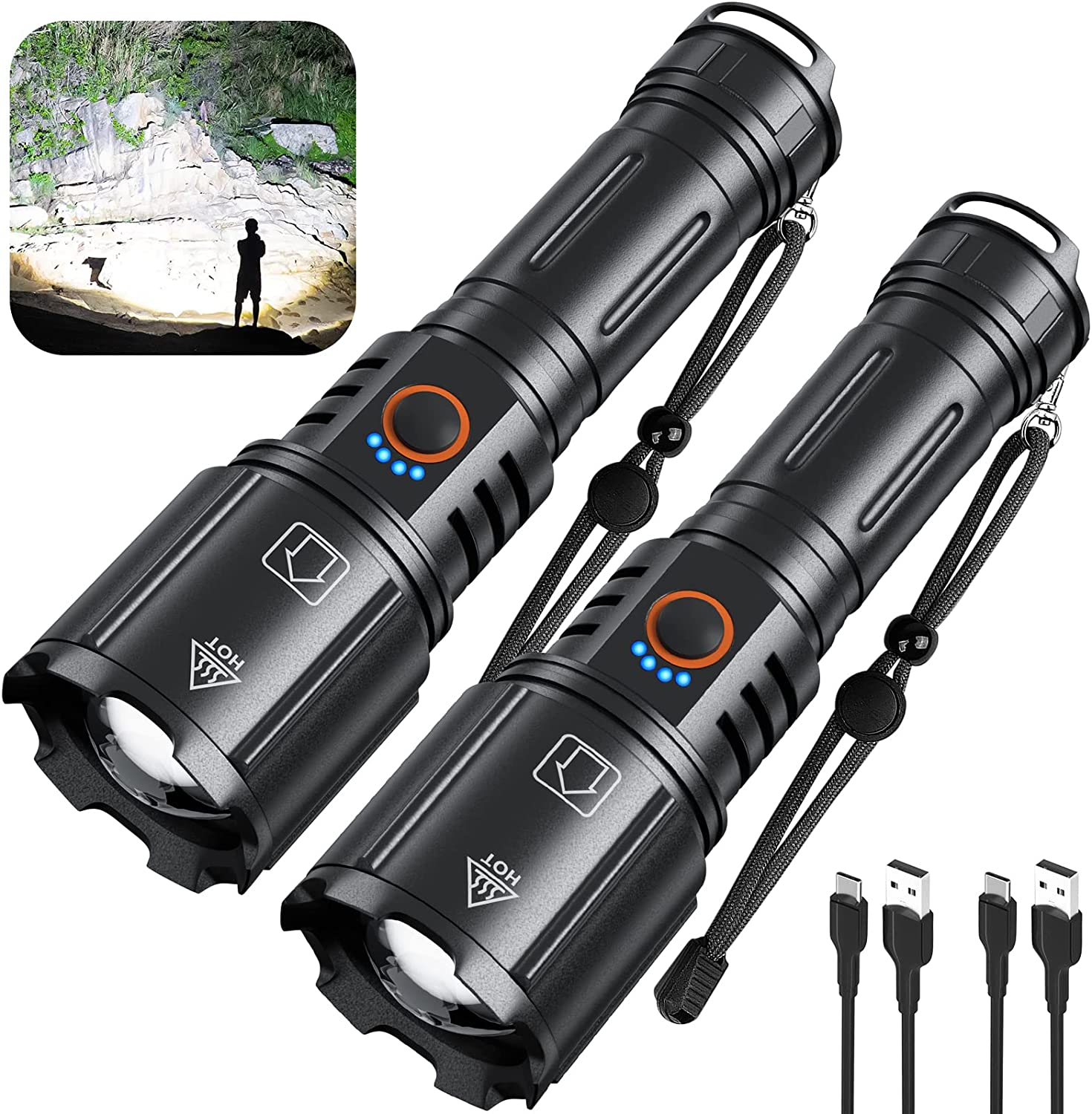 Rechargeable Flashlights High Lumen 2 Pack, 120000 Lumens Super Bright 5000mAh High Capacity LED Flashlight with 5 Modes, Powerful Handheld Flash Light for Camping Emergencies,Waterproof,Zoomable