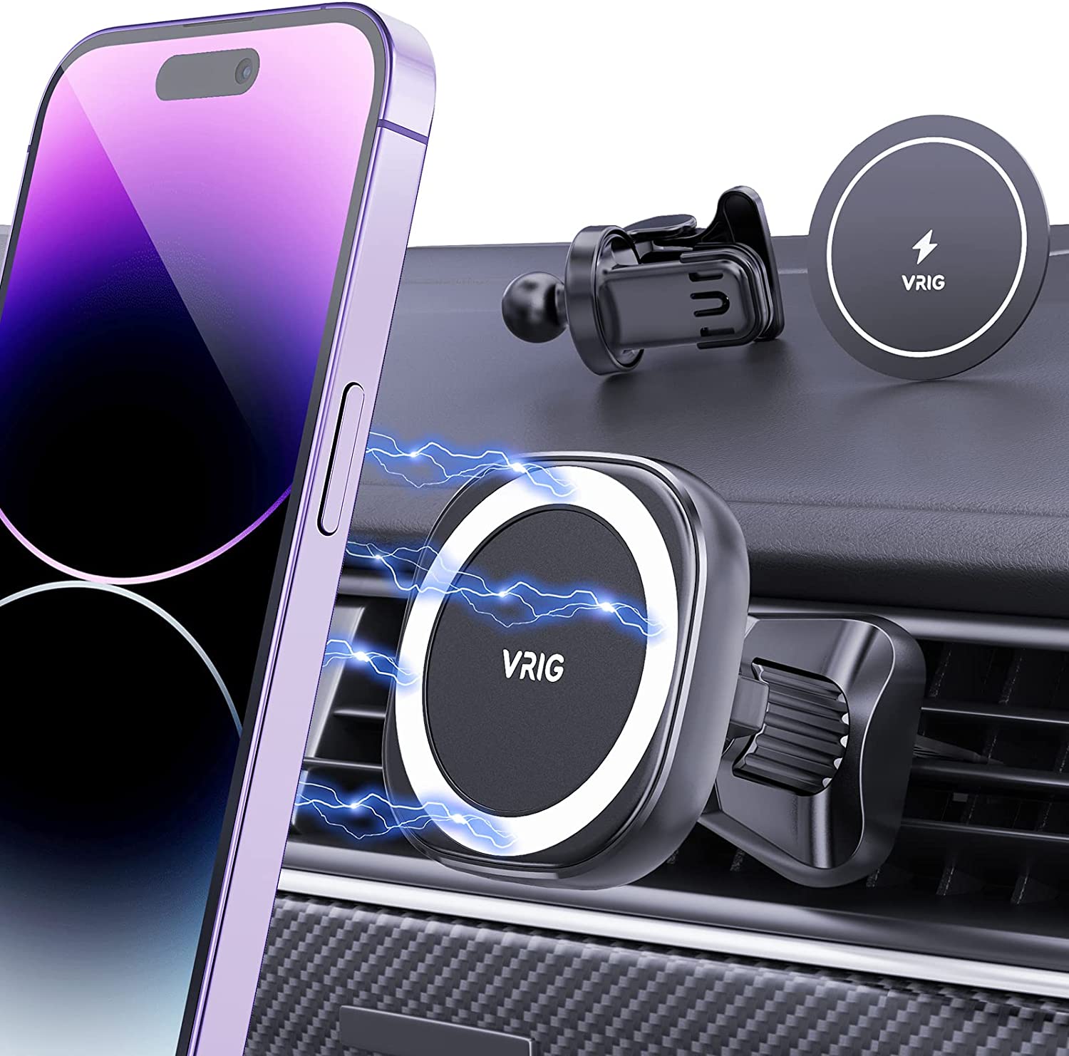 ? Convincing quality and universal compatibility: VRIG car phone stand has passed magnetic force, telephone signal, hook stability and ingredient safety tests. The quality shall be strictly controlled. The car stand holds most smartphones and mini tablets compatible with iPhone 14 13 12 11 pro max/XR/X/8/7/6/5, Note 9/Galaxy Note20 U, S21 S20 S10 S9 S8 S7 S6, iPad Air 2/mini 3/pro 9.7 and more. This product can be used with MagSafe.