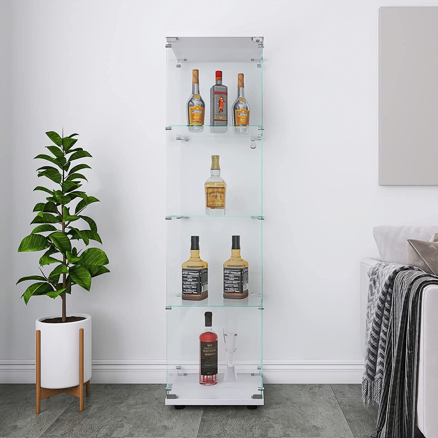 High Quality&Safe:FANYUSHOW 4-shelf glass display case is constructed with high-quality tempered glass and solid wood boards. Tempered glass is thicker than ordinary glass, has stable structure.There are bumper strips between glass plates for safe opening.