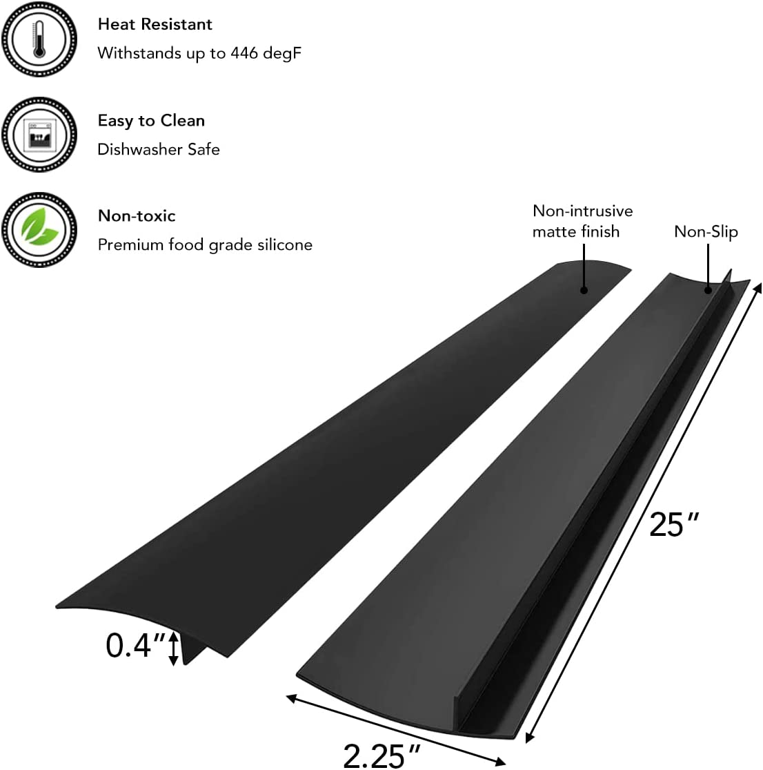 - 【Simple To Install】These universal 21 inch gap covers sit perfectly in place on all stovetops. The non-slip flexible silicone conforms to your stove and counter surfaces. Easily customize to your stove by cutting.( for the shorter place)