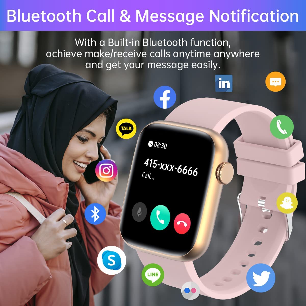 【Smart Watch with Text and Call】: The smart watch can be connected to the mobile phone through Bluetooth, so that you can answer and make calls on the watch, and you can also receive notifications from Facebook, Whatsapp, Twitter, SMS, etc. The voice assistant will be your good helper. Effectively solve the situation that it is inconvenient to look at the mobile phone when you are meeting, cooking, or exercising.