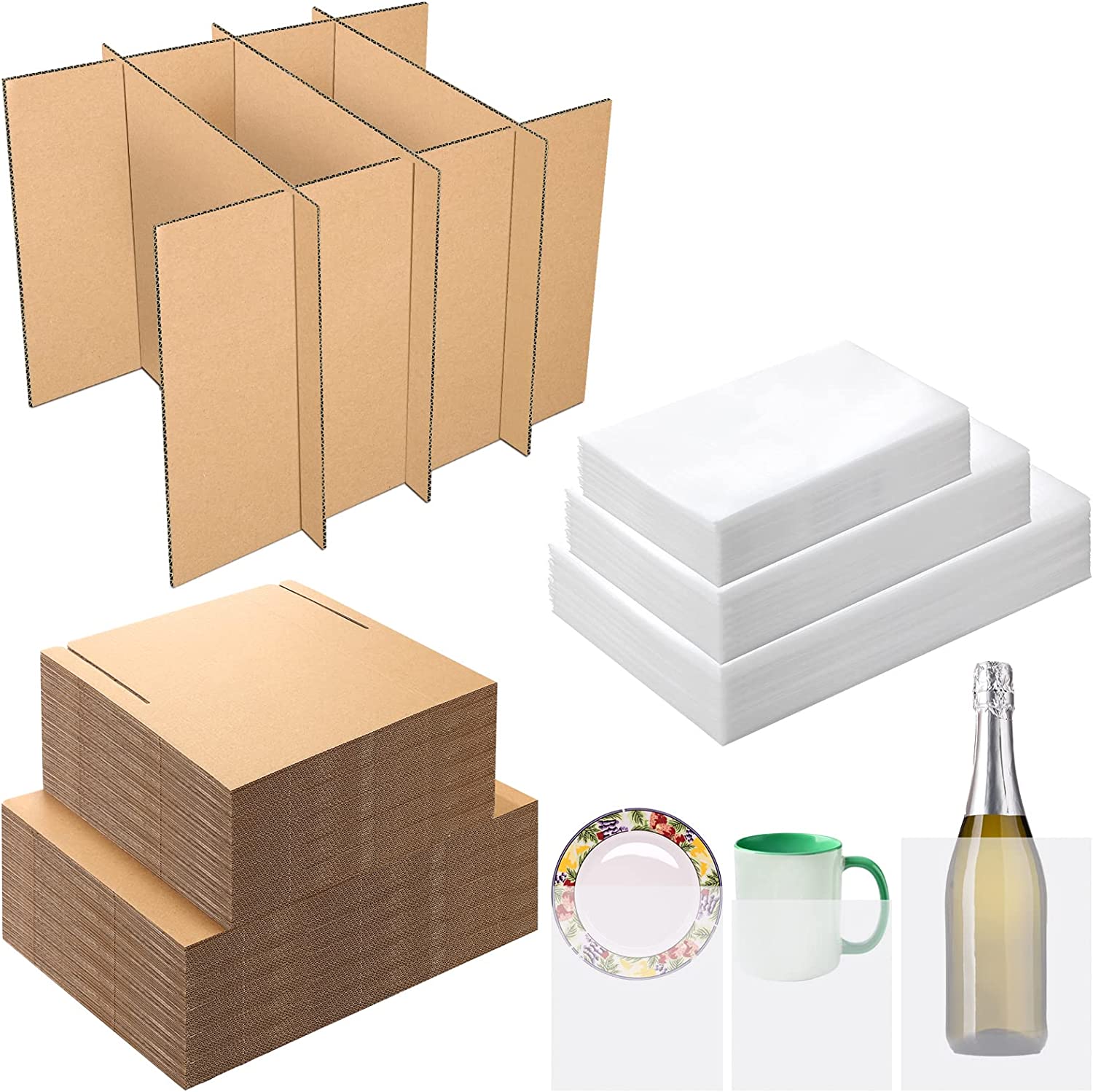 What You Will Receive: you will receive a dish packing kit, including 16 pieces of 15.16 x 11.02 inches/ 38.5 x 28 cm glass dividers, 24 pieces of 11.22 x 11.02 inches/ 28.5 x 28 cm glass dividers, 20 pieces of 5.91 x 7.87 inches/ 15 x 20 cm foam pouches, 20 pieces of 9.84 x 11.81 inches/ 25 x 30 cm foam pouches, 20 pieces of 11.81 x 15.75 inches/ 30 x 40 cm foam pouches; They suit for 16 x 12 x 12 inches boxes; Please check the box size before purchasing