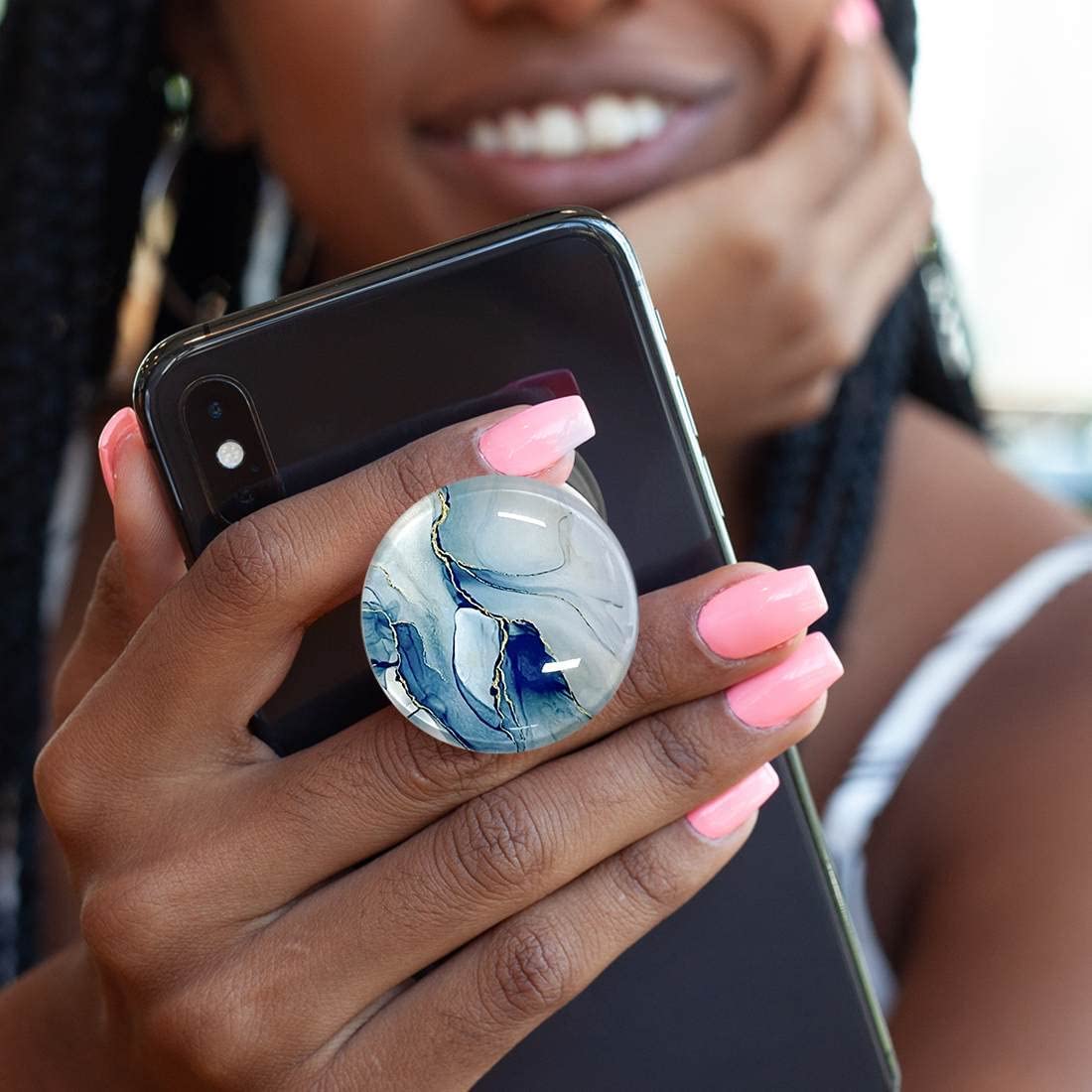 WUYULB Clear Crystal Glitter Collapsible Expandiing Moblile Phone Grip Stand Holder for Smartphones and Tablets Cell Phone Accessory (Blue Marble)