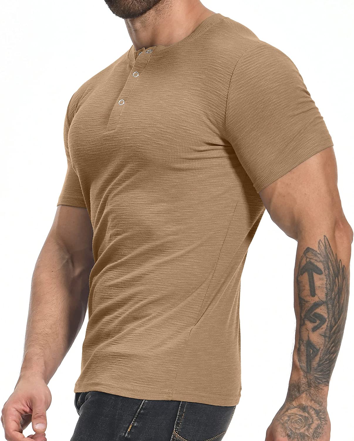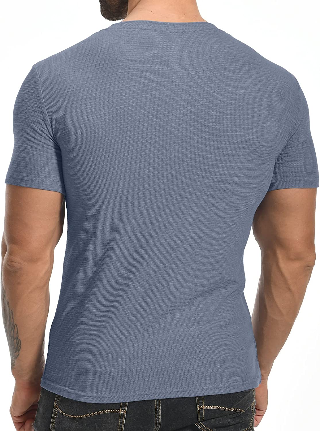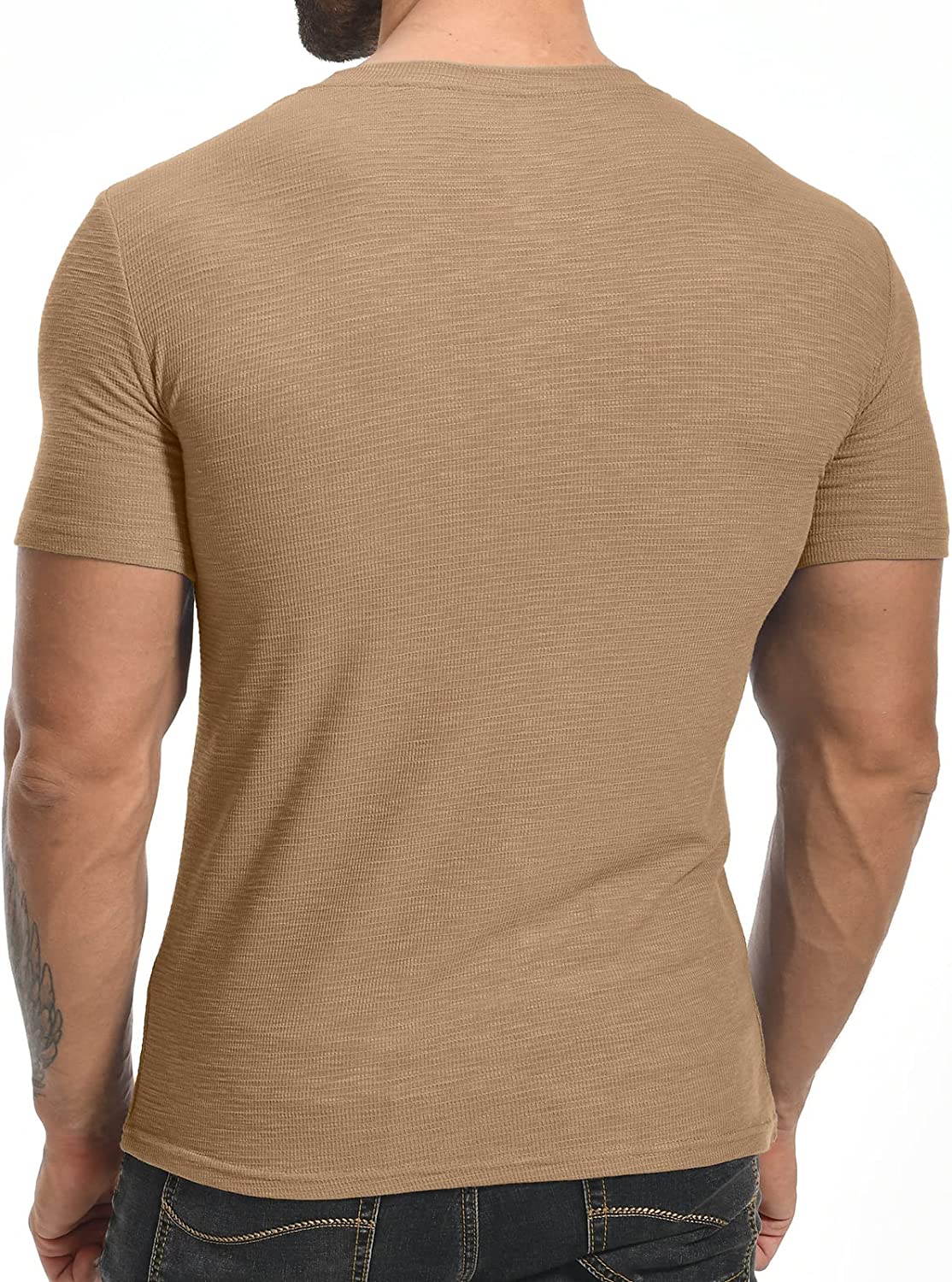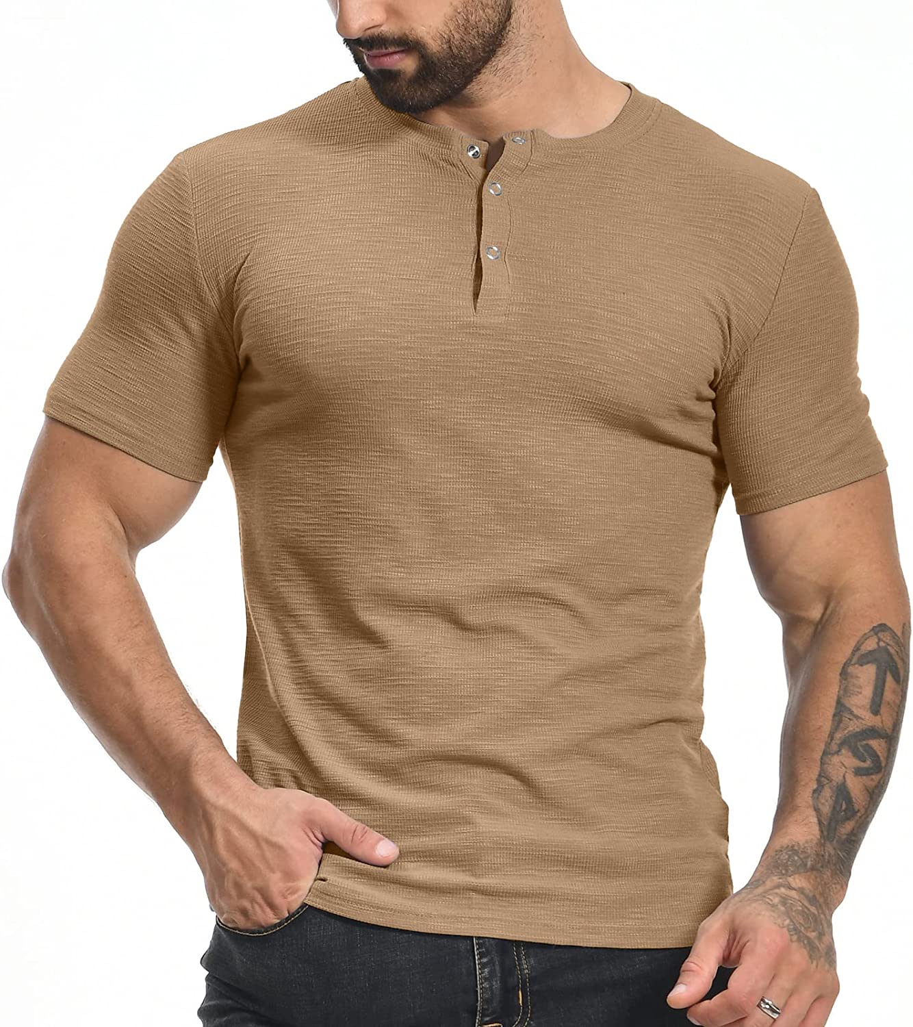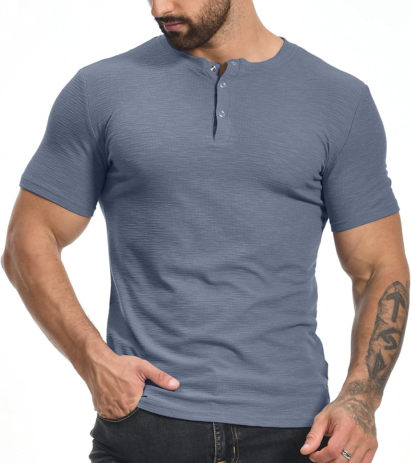 YTD Men's Muscle T Shirts Stretch Short Sleeve Workout Tee Casual Slim Fit Henley Shirt