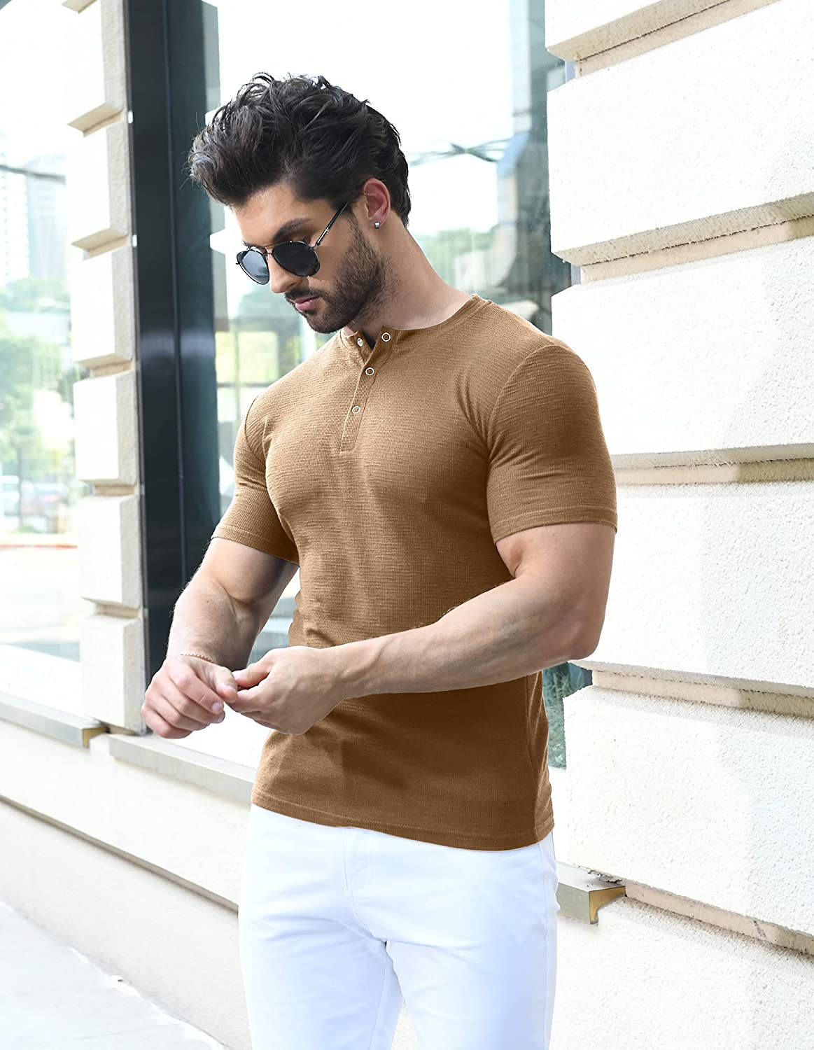 • FASHION MENS T SHIRT - You should be an exquisite man anytime! This muscle henley shirt is sure to be flattering and complimentary as well as comfortable.