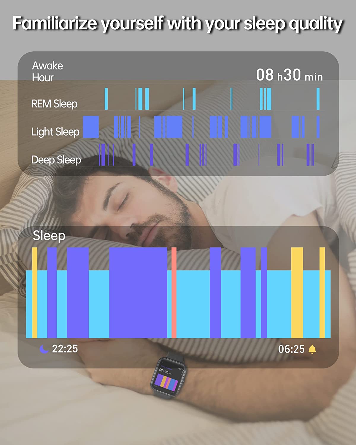 【Calling & Message Alerts & Alexa】 Connected to your phone via bluetooth and APP, this smartwatch with built-in Alexa voice assistant frees you from the anxiety of missing important calls and messages. By setting call and message alerts to vibrate or ring, you will know exactly which call or message you need to respond to in a timely manner. (Note: The smartwatch can receive messages from Facebook, Twitter, Ins, Whatsapp and more but it does not support sending texts.)
