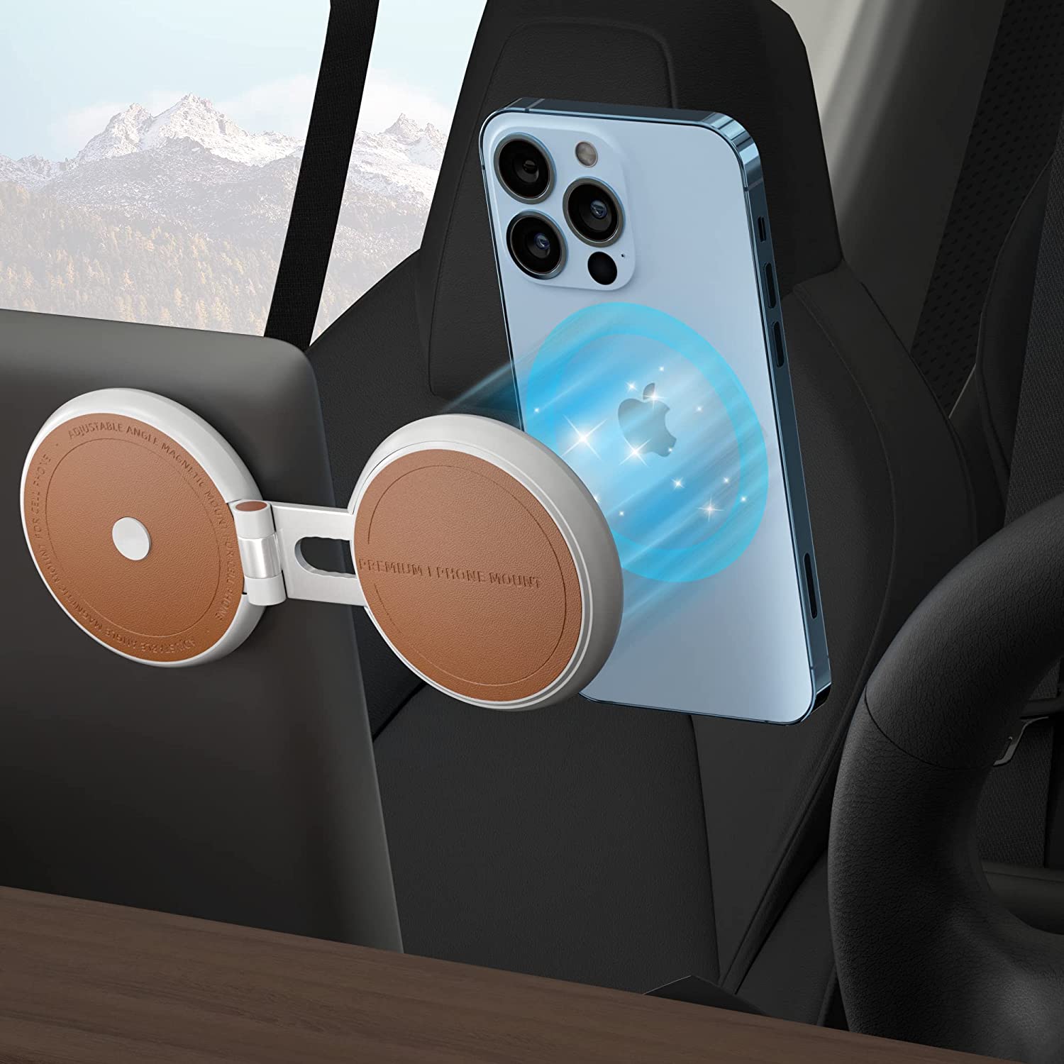 ?【Upgrade Car Phone Mount】 Tesla phone mount With 24 built-in strong magnets, help this cell phone holder holds your phone firmly and stably even on bumpy roads. The base has 2PCS 3M adhesive pads to allow this phone holder to mount on the dashboard or back of the central control screen firmly without worrying about falling out. (NOTE: If your iPhone 12/13/14 has a thick case or you use other iPhone or Android phones, please stick the metal ring on the back of your phone or case.)