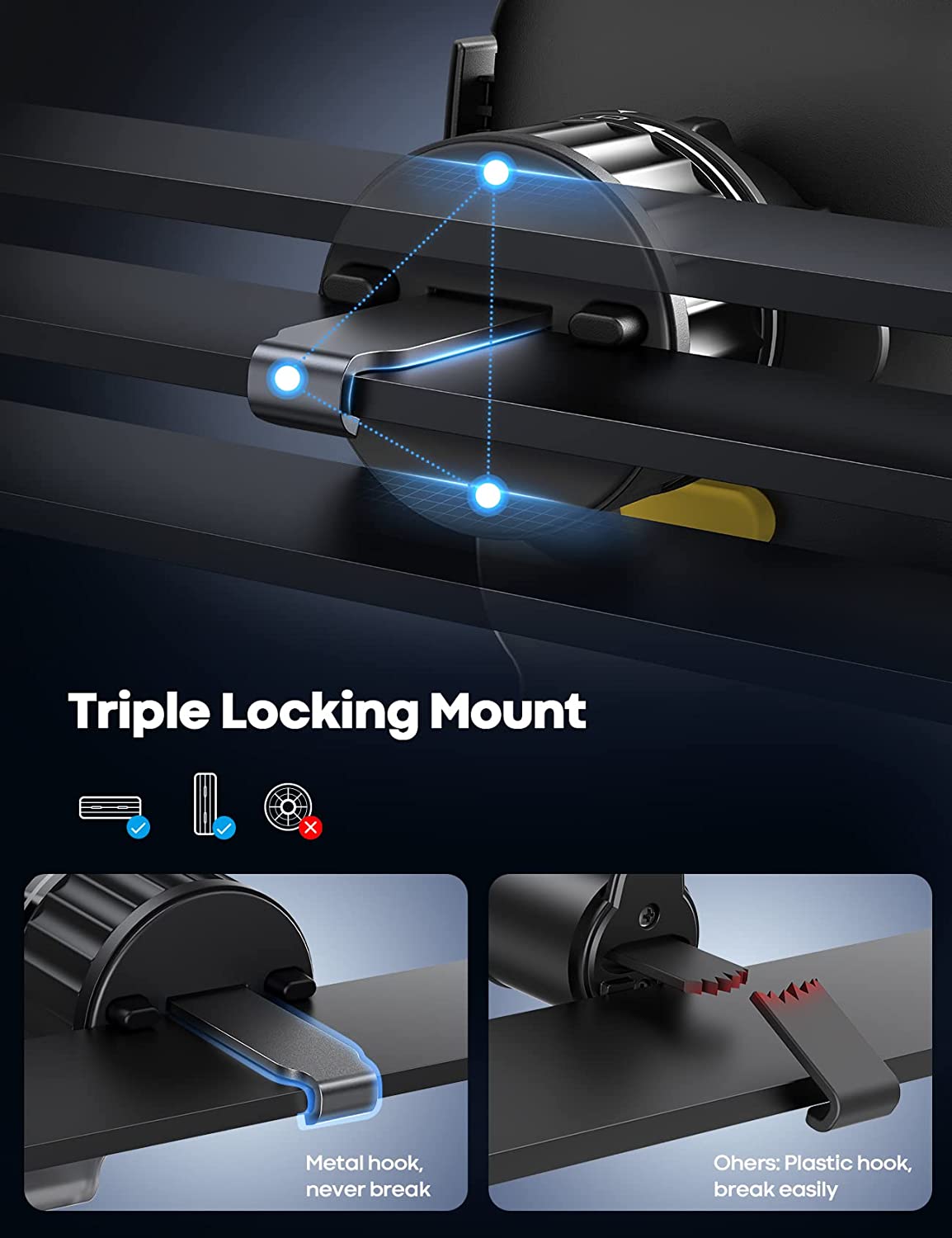 ?【Stable Triangular Structure & Metal Hook】 The self-retracting spring hook will not damage vent due to the hook being too tight, and prevents damage to air vent blades. The triangular structure contacts with the metal hook and the upper and lower louvers. Give you the most stable experience. Note❗❗❗ Hook extension range 11mm-23mm. Not suitable for Round Vent.