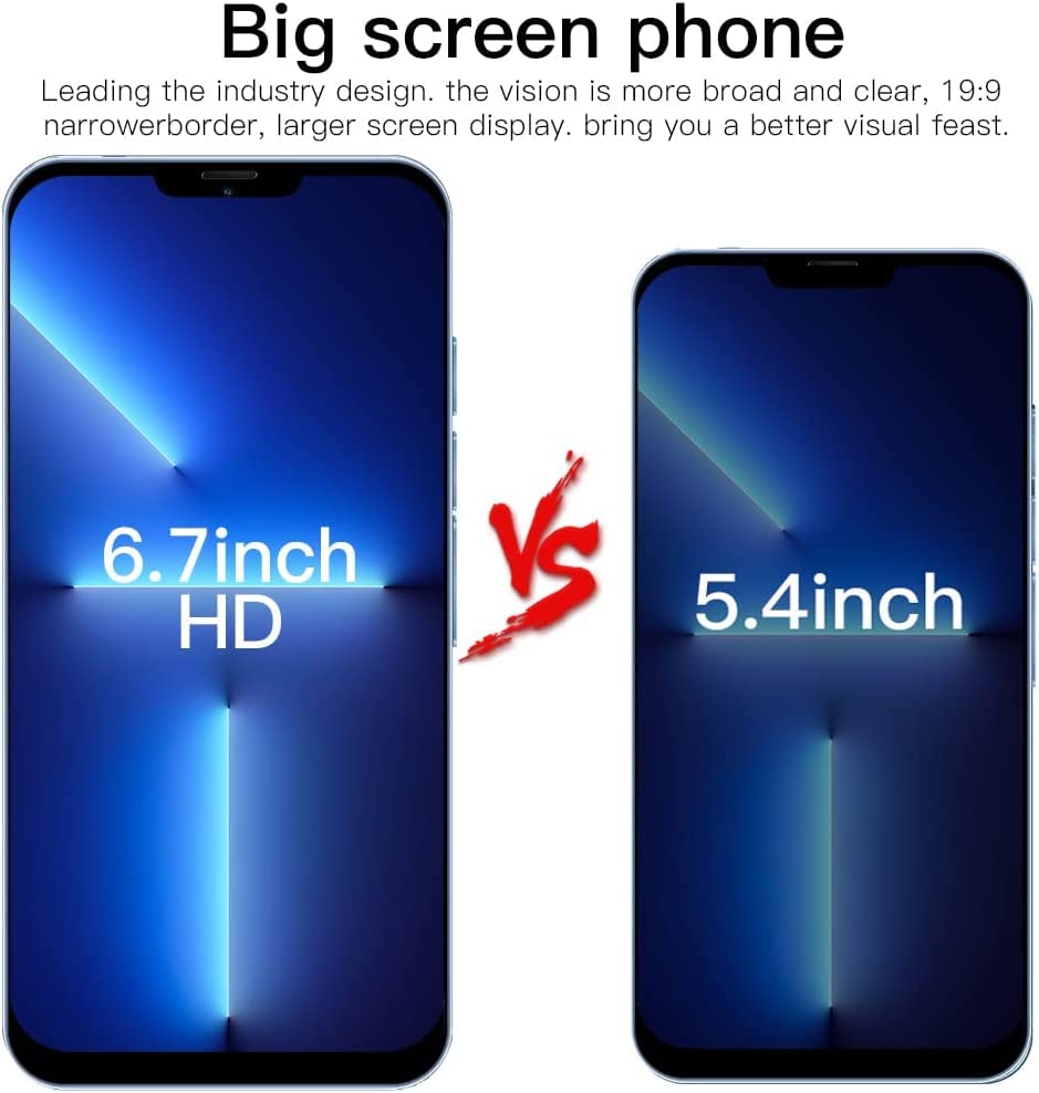 - ?【Real 6.7inch HD Full Screen】Android phone unlocked with 6.7 Inch screen allows you to experience a wider field of view,showing more content in games and videos,The wide screen view and the high color reproduction make the screen look very clear and the fine quality is better.