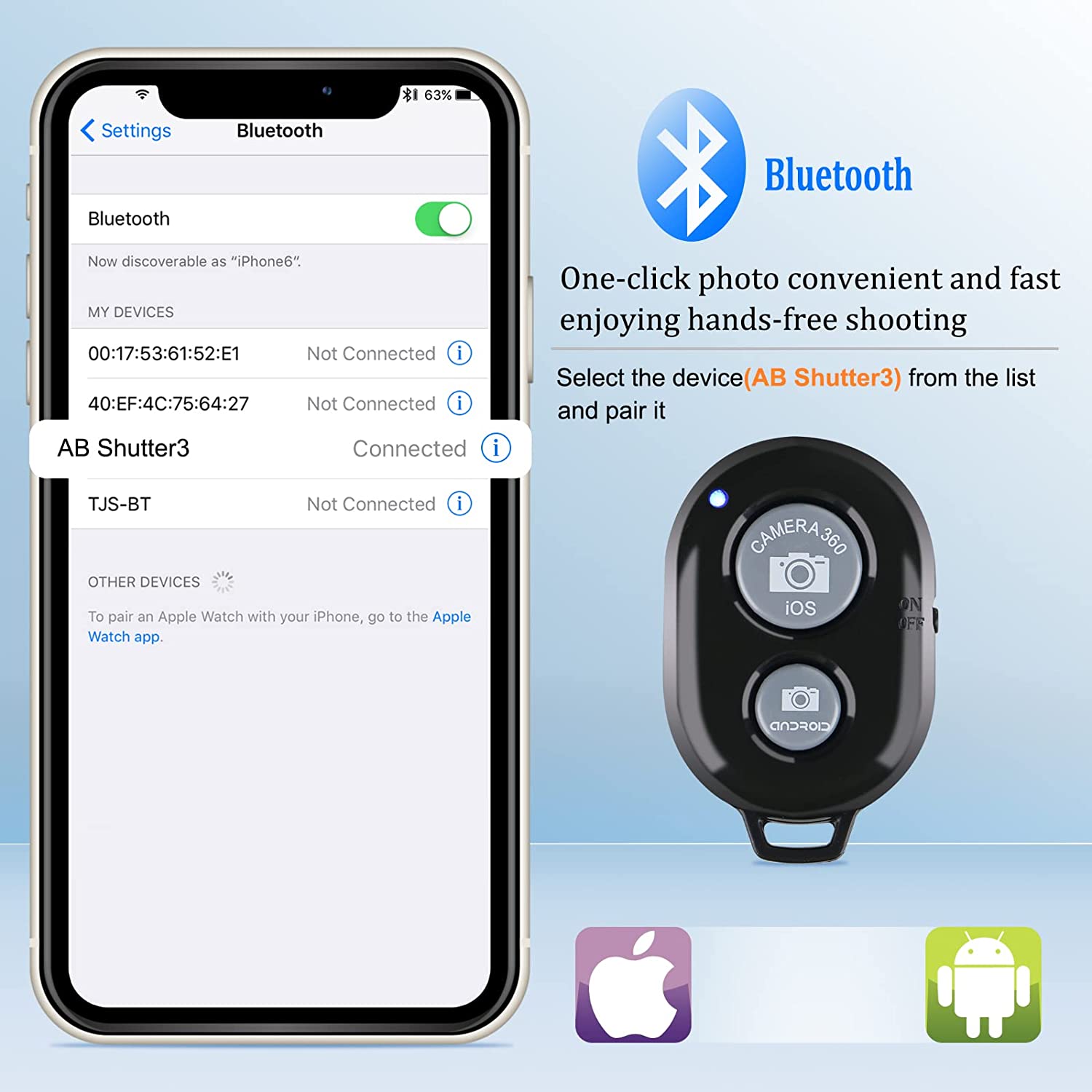 【FAST BLUETOOTH REMOTE SHUTTER】Taking pictures or start recording immediately after pressing the button 1-2s. Our phone tripod is equipped with a wireless bluetooth remote, it does not need to download any applications, let alone provide any information, and the operation is simple and easy to connect. Shoot and Save. Allows you to take selfies or group photos easily from a distance of up to 10m/33ft. PS: To avoid situations where the remote's on/off button sometimes turns itself on in your pocket. Our remote with a switch button, so you can turn it off at any time and save power.