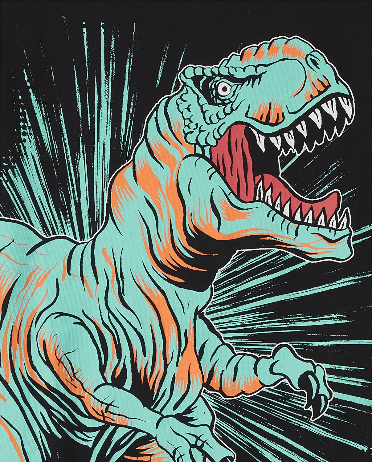 - DESIGN — Features short sleeves, rib-knit crew neck and dinosaur graphic design at front