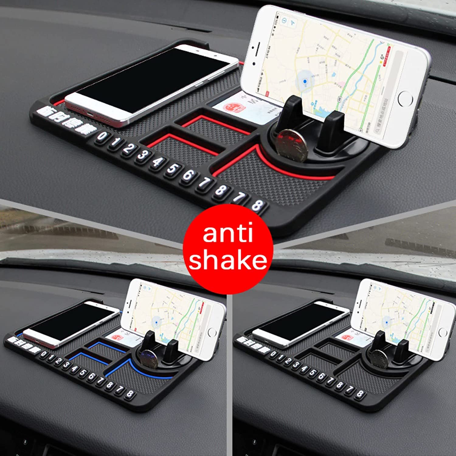 - 【Non-Slip Phone Pad for 4-in-1 Car】Non slip phone pad 4 in 1 for car,no complicated installation procedures,no magnets, screws or complicated suction cups,just put on and use. Non-Slip phone pad for 4-in-1 car can be used as a mobile phone holder mount,non slip multifunctional phone pad for car can display number plate, non-slip phone pad for car dashboard has a storage function,can place items on the dashboard of car,RV,boat and more.