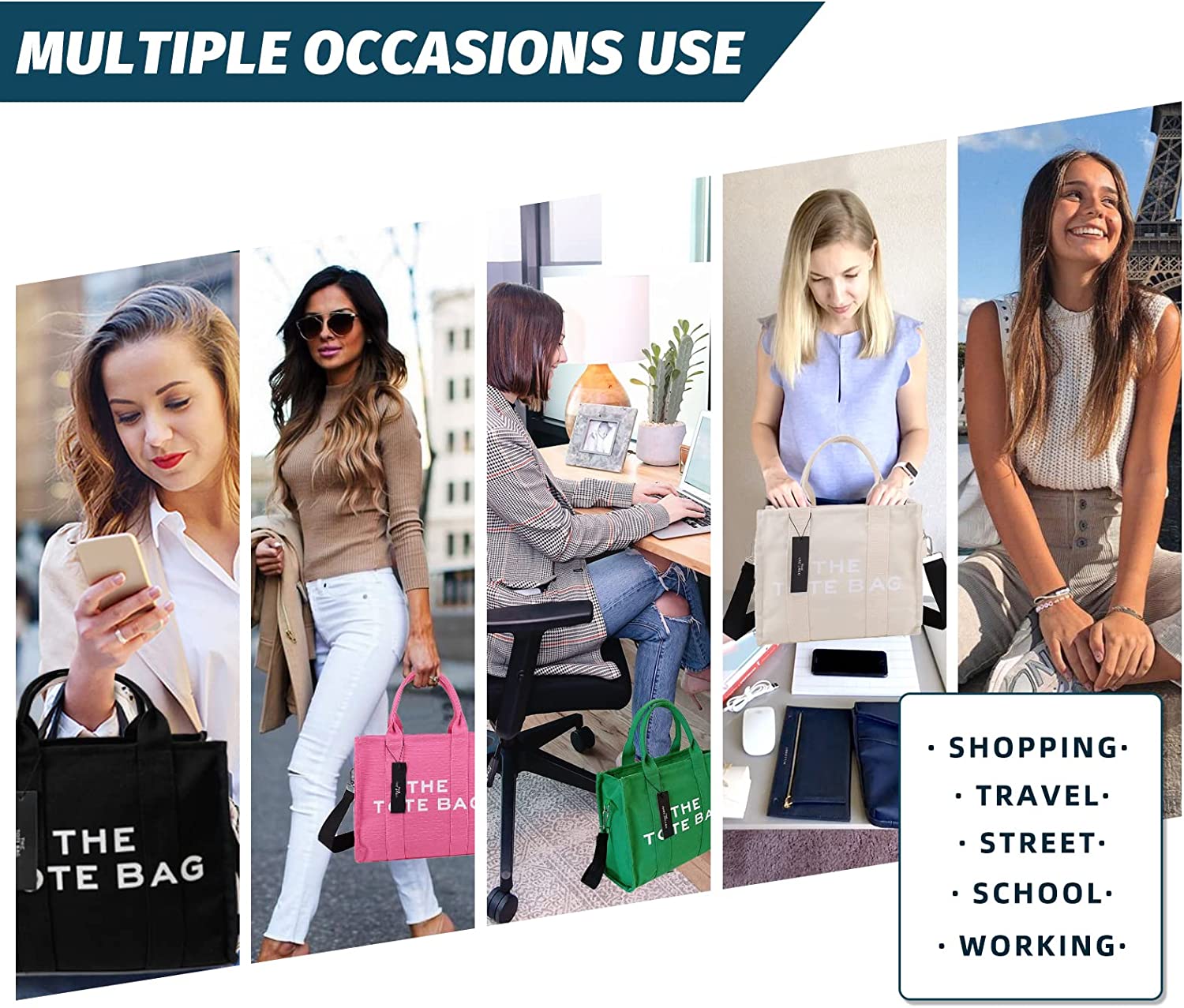 The tote bag for Women is a must-have for women, simple and spacious utilitarian design with a strap , it is widely used for putting all your belongings in. Made from sturdy canvas and styled with bold block lettering, simple and fashionable, meet the demand of consumers.