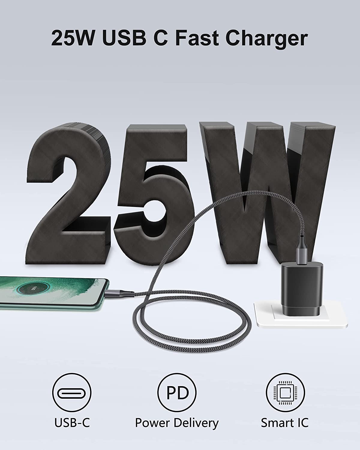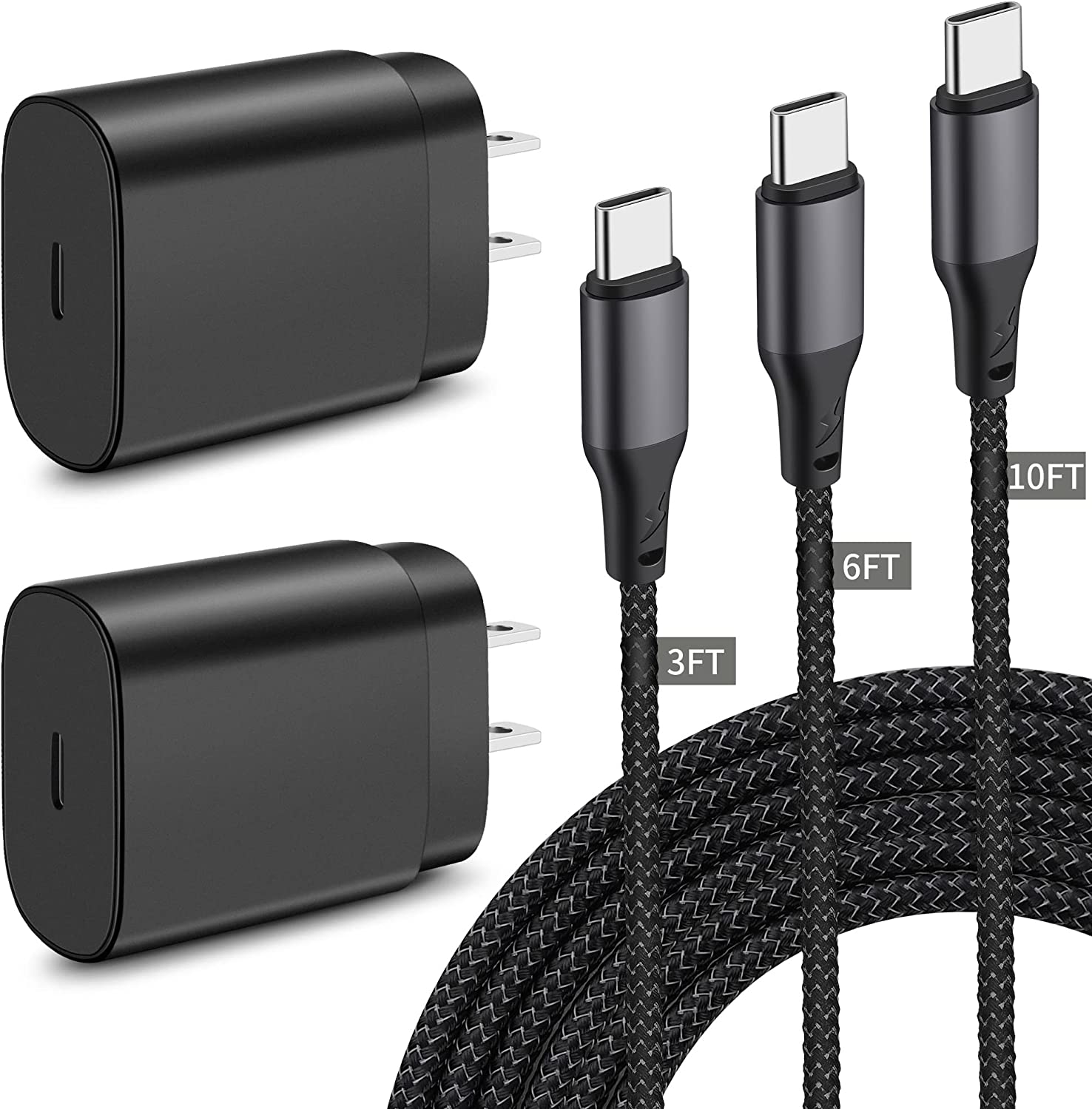 Super Fast Charger Type C, 2Pack 25W USB C Wall Charger Block with 3FT 6FT 10FT Braided Long USB-C to USB C Cable Fast Charging for Samsung Galaxy S23/S23 Ultra/S23+/S22/S22 Ultra/S21/S21+/S20/FE 5G