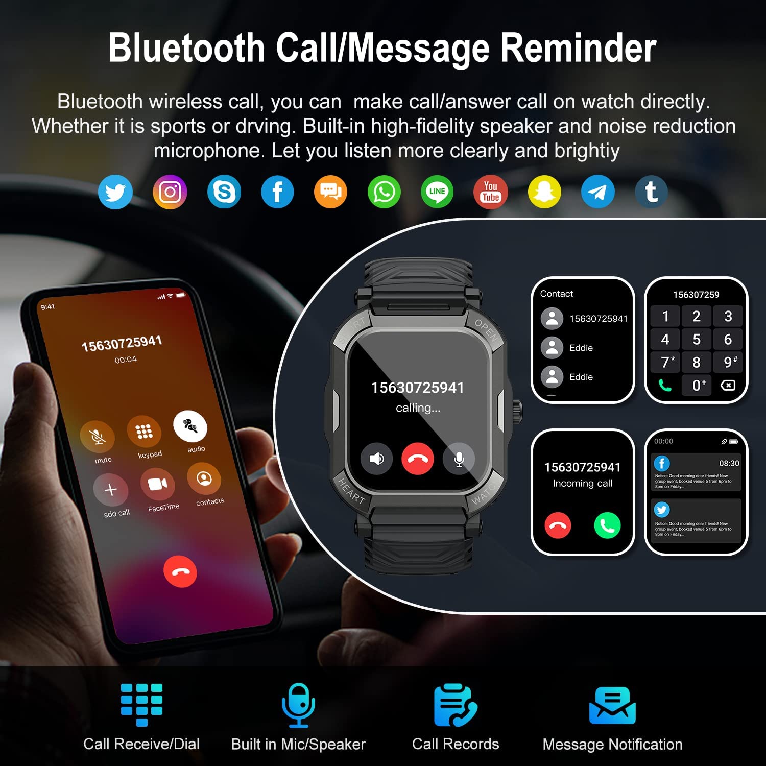 • Smart watch with text and call - Health watches for men is equipped with a high-quality speaker, can directly use the work watches for men to answer make calls/play music/read messages/store contacts/view call history. You can get notifications of calls, SMS and SNS messages, Whatsapp, text, facebook etc.You will never miss any calls & message during meetings or workout.Smart watch for android phones text and call equipped with 270 mAh large capacity long battery life and can be used 7-15 day