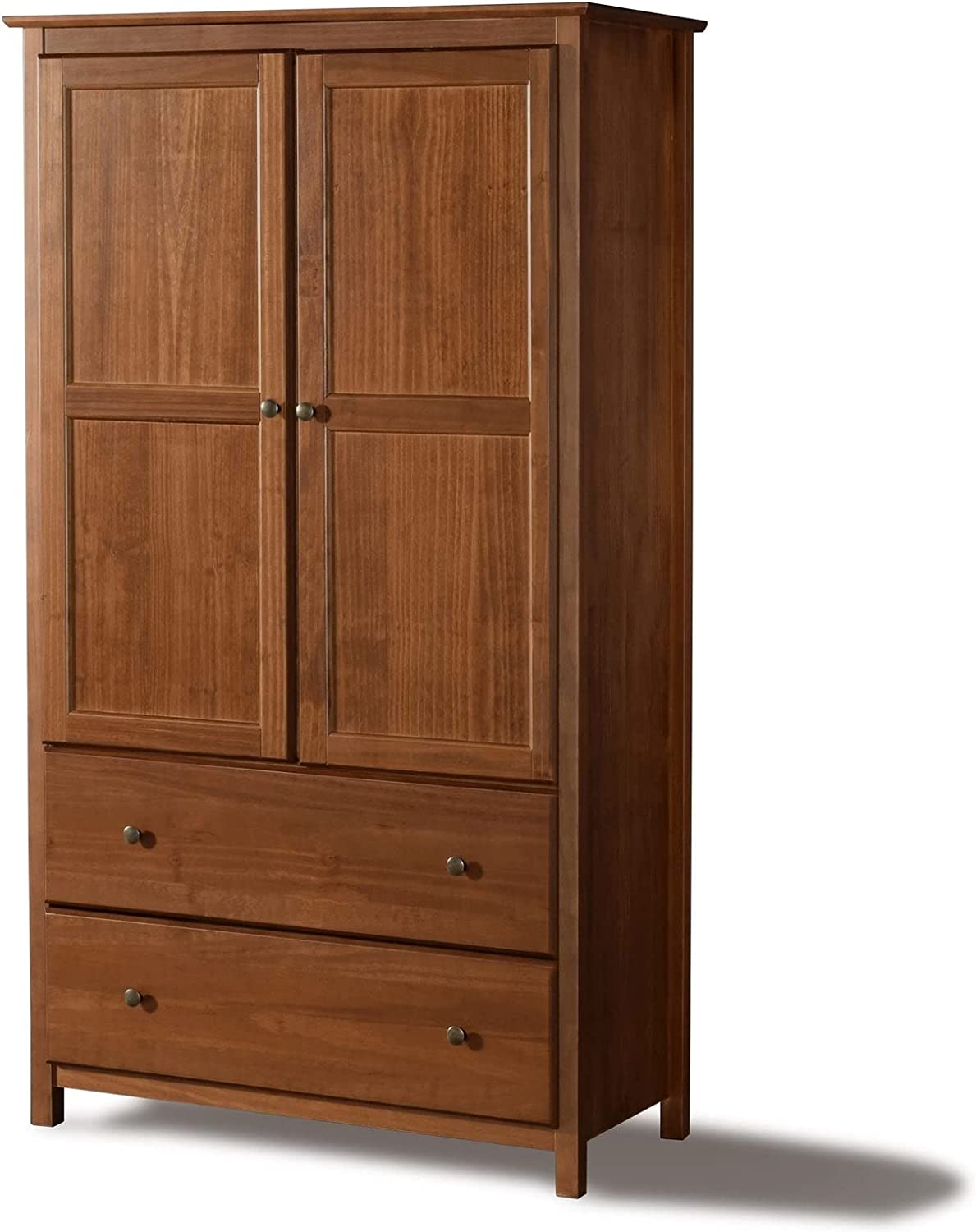 Grain Wood Furniture Shaker 2-Door Wardrobe, Walnut