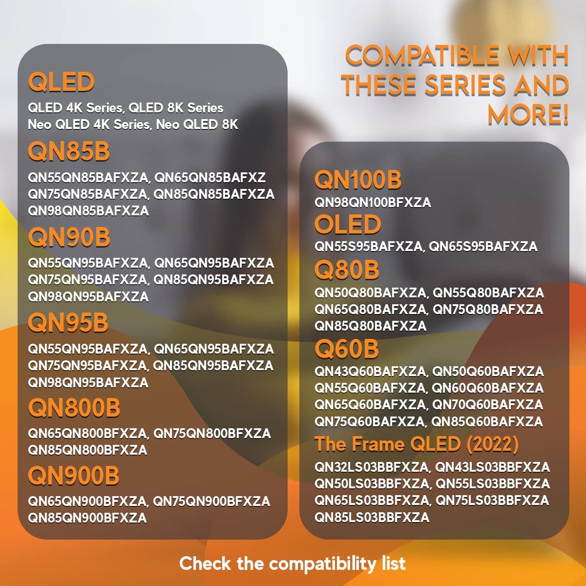 • Compatible with QN55QN85B, QN65QN85B, QN75QN85B, QN85QN85B, QN98QN85B, QN43QN90B, QN50QN90B, QN55QN90B, QN65QN90B, QN75QN90B, QN85QN90B, QN98QN90B, QN55QN95B, QN65QN95B, QN75QN95B, QN85QN95B, QN98QN95B, QN65QN800B, QN75QN800B, QN85QN800B, QN65QN900B, QN75QN900B, QN85QN900B, QN98QN100B