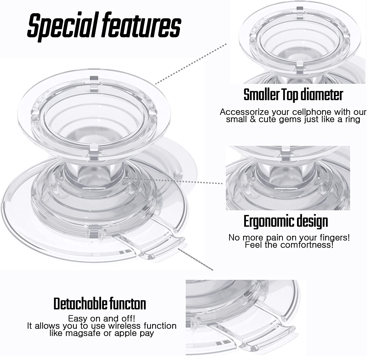 PACKAGE INCLUDES:✔️ 1pc Acetate phone grip & Accessory box & Adhesion Enhanced Film