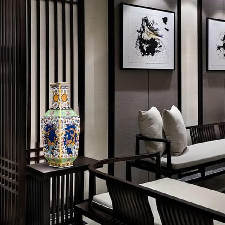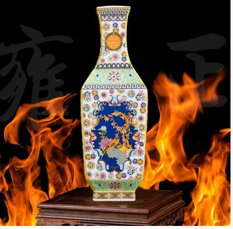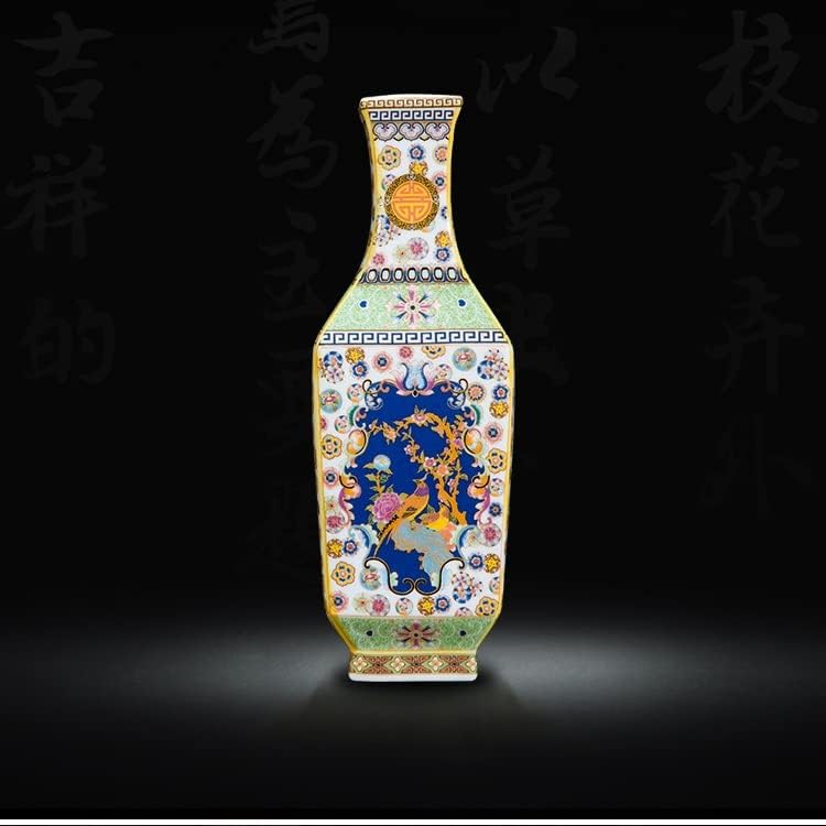 ZSEDP Ceramic Vase Decoration Antique Enamel Powder Color Porcelain Small Mouth Square Vase Gift Classic Home