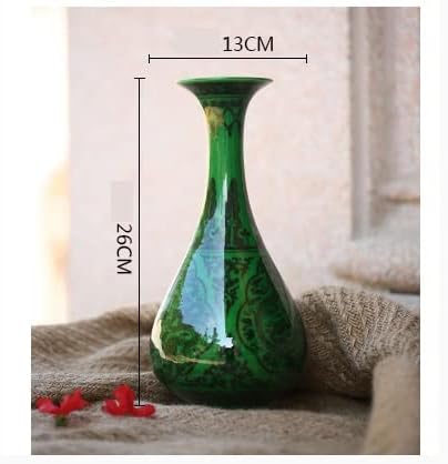 ZSEDP Antique Green Glaze Ceramic Vase Flower Vase Handmade Furnishing Articles Sitting Room Bedroom Decoration