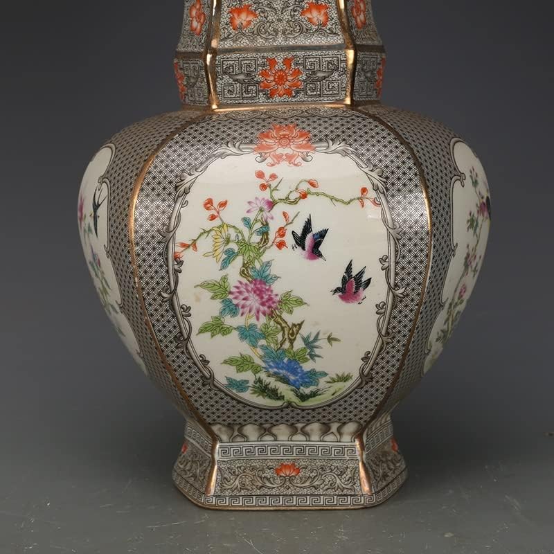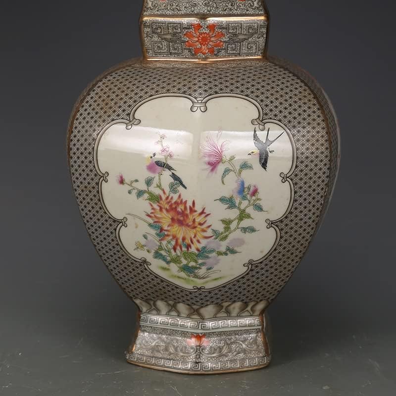 ZSEDP Jingdezhen Antique Enamel Square Vases Flowers and Birds Pattern Ancient Porcelain