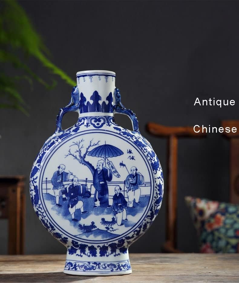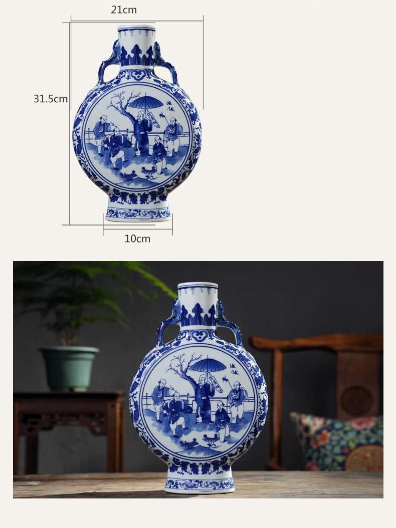 ZSEDP Jingdezhen Antique Blue and White Vase with Chinese Ancient Figures Pattern Double Ears Vase Ancient Porcelain
