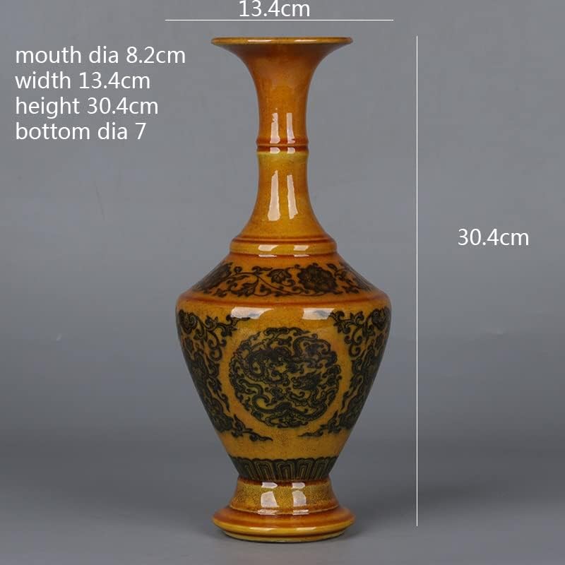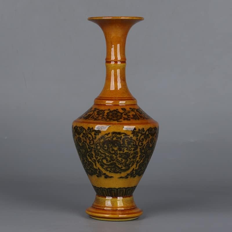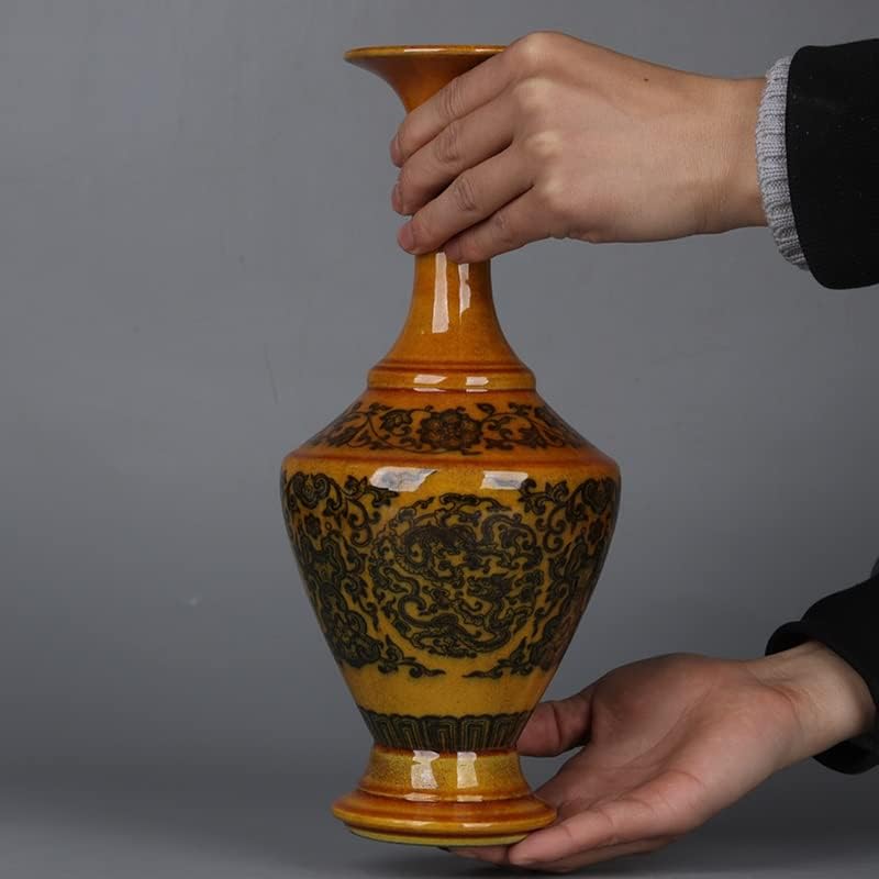 ZSEDP The Egg Yolk Glaze Twigs and The Dragon Pattern Vase Flower Utensils Antique Porcelain Ornaments