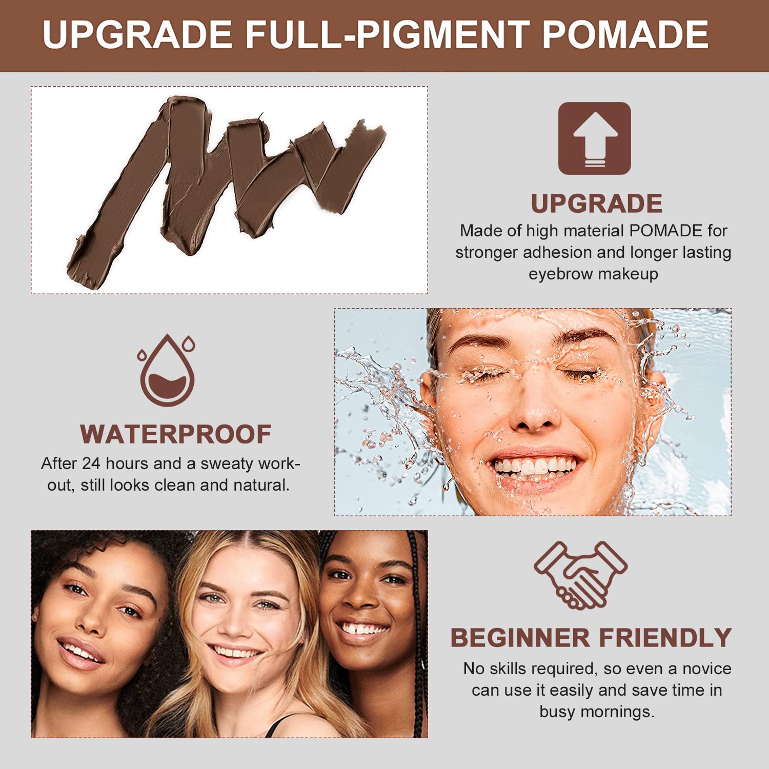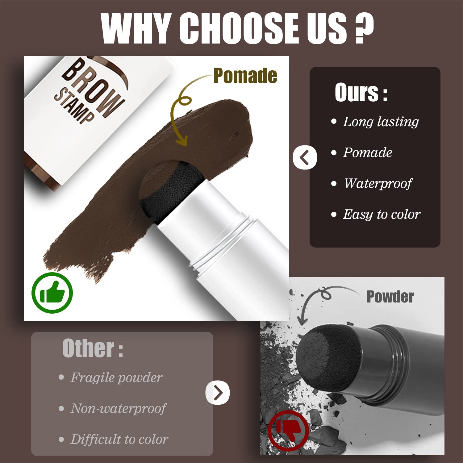 • 【WATERPROOF & LONG-LASTING】Unlike other eyebrow stamp (made of powder) , our durable eyebrow stamps are made of high material POMADE for stronger adhesion and longer lasting eyebrow makeup, more waterproof and sweatproof than normal eyebrow powder. After 24 hours and a sweaty workout, still looks clean and natural. When you are ready to take them off, simply wipe clean with your favorite make-up remover.