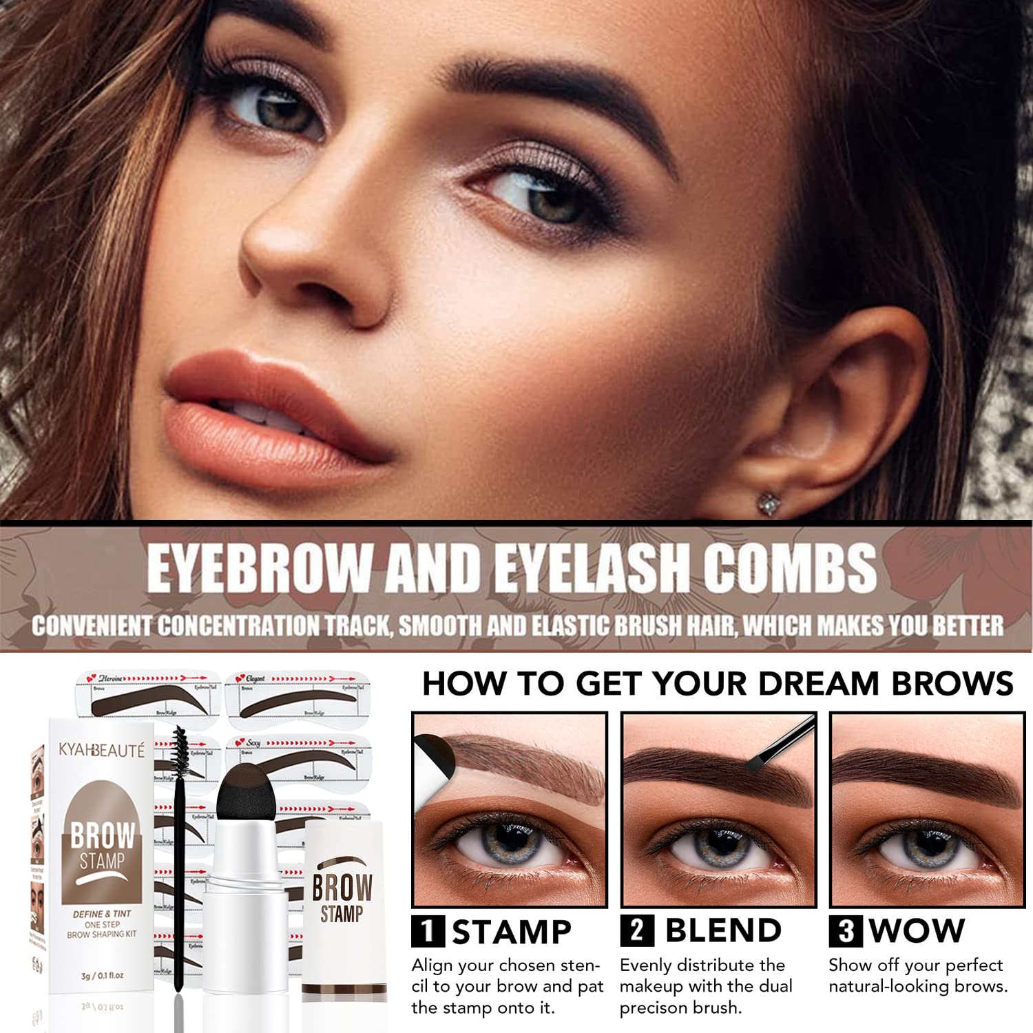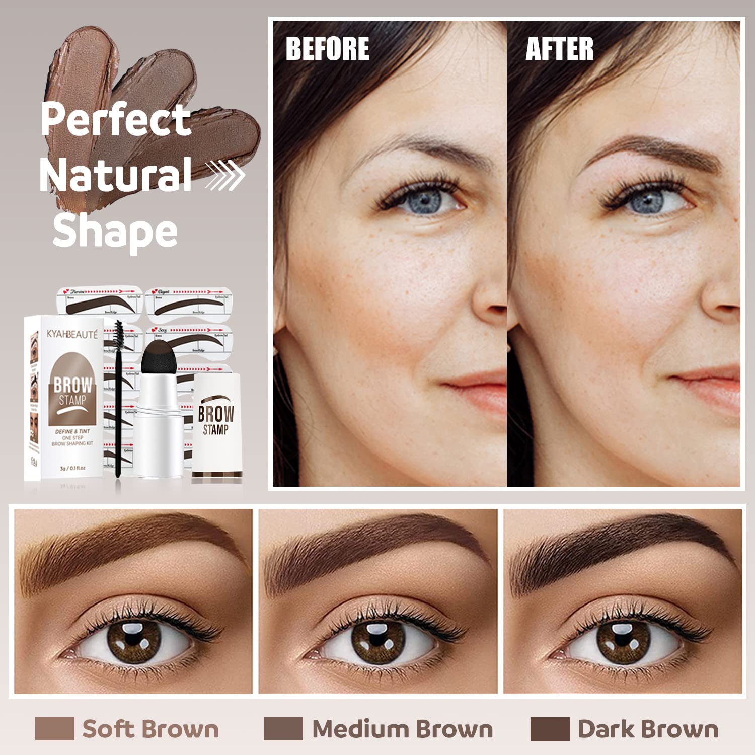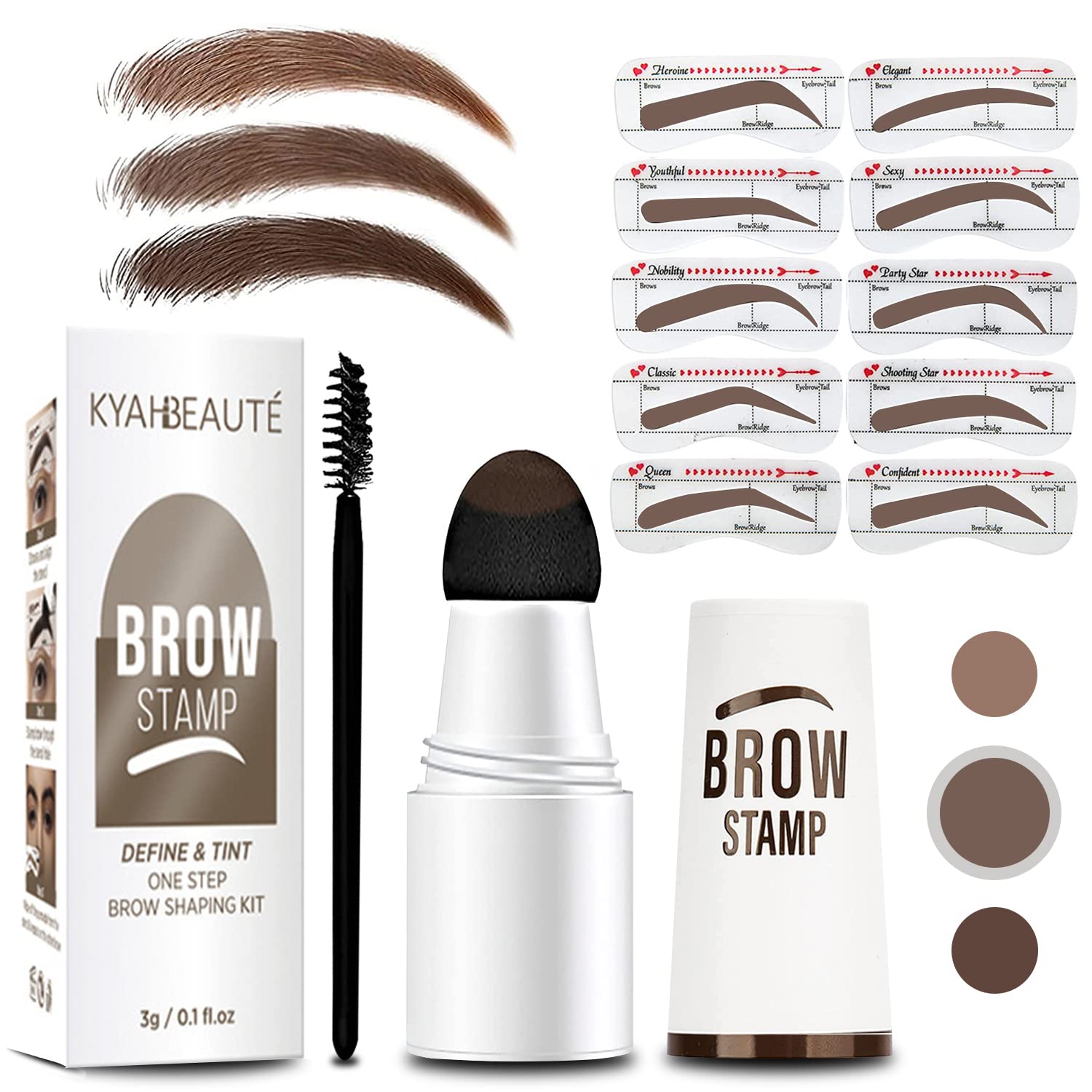 • 【BEAUTY FOR EVERYONE 】Comes with Ten different eyebrow stencils and three popular colors of stamp to choice: Dark Brown, Medium Brown & Soft Brown, to fit all kinds of eyebrow shapes and face shapes.The newly designed silicone stencil combines the golden ratio of the face and eyebrow bone, which is suitable for various thick and thin eyebrows.