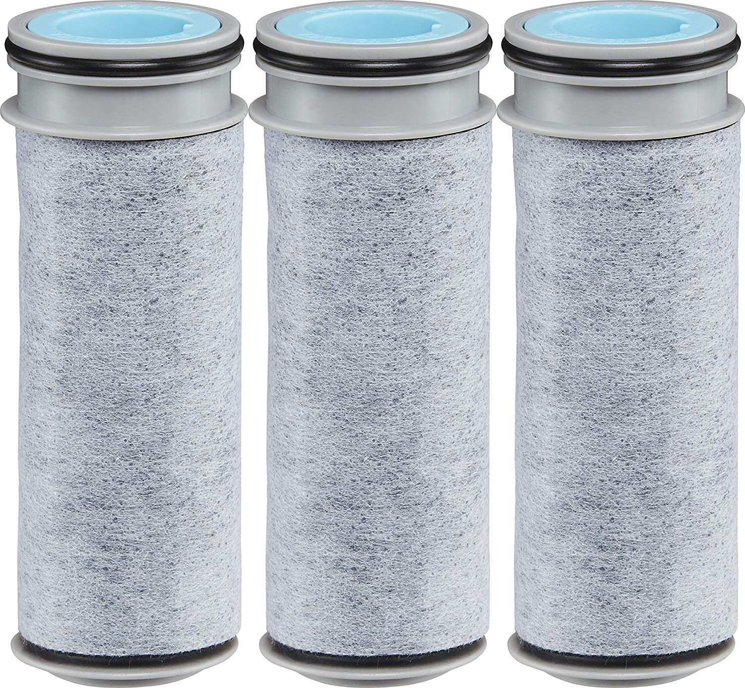 BPA-free Brita Stream Replacement Filters are made with Filter-As-You-Pour technology so you can get filtered water 10X faster compared to the market leading pitcher system. Made with proprietary dual-layer filtration technology and containing activated carbon to reduce chlorine taste and odor., These filters deliver great-tasting water and maintain a healthy level of fluoride, an additive in water that promotes strong teeth (applies to fluoridated municipal tap water). The filters have an easy-hold grip and click button for simple insertion and removal. Change these filters every 40 gallons, about 2 months for the average family, for best performance. The innovative carbon form means no black flecks. One Stream filter can replace 300 standard 16.9 ounce water bottles. Drink cleaner, great-tasting water with Brita.