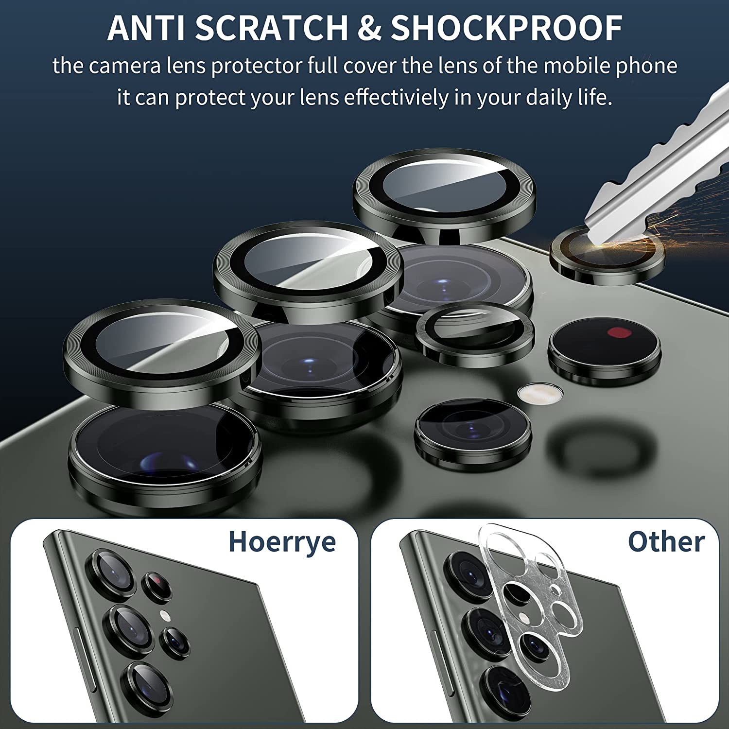 Space titanium alloy + 9H tempere glass materials more wear-resistant and stronger, High picture quality and Light enough, will not affect the phone pixels, Full coverage design, prevent dust from entering the S23 ultra camera lens gap.