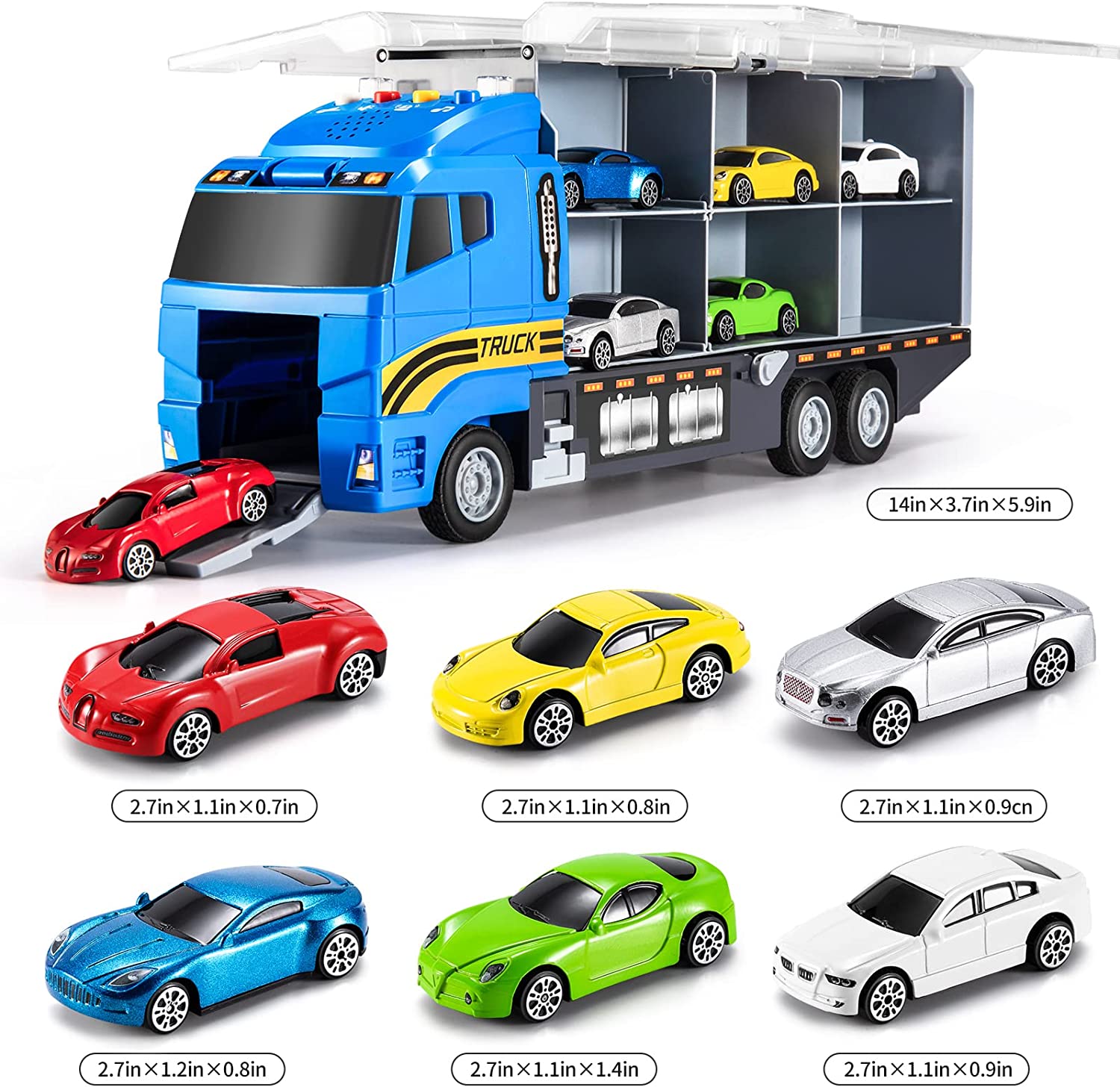 - KIDS RACE CAR TOYS SET - Equipped with 1 x foldable play mat, 1 x multi-function transport cars, 6 x different colorful die cast race cars and a set of road signs. It is highly recommended for kids aged 3 and above to create endless happy times!