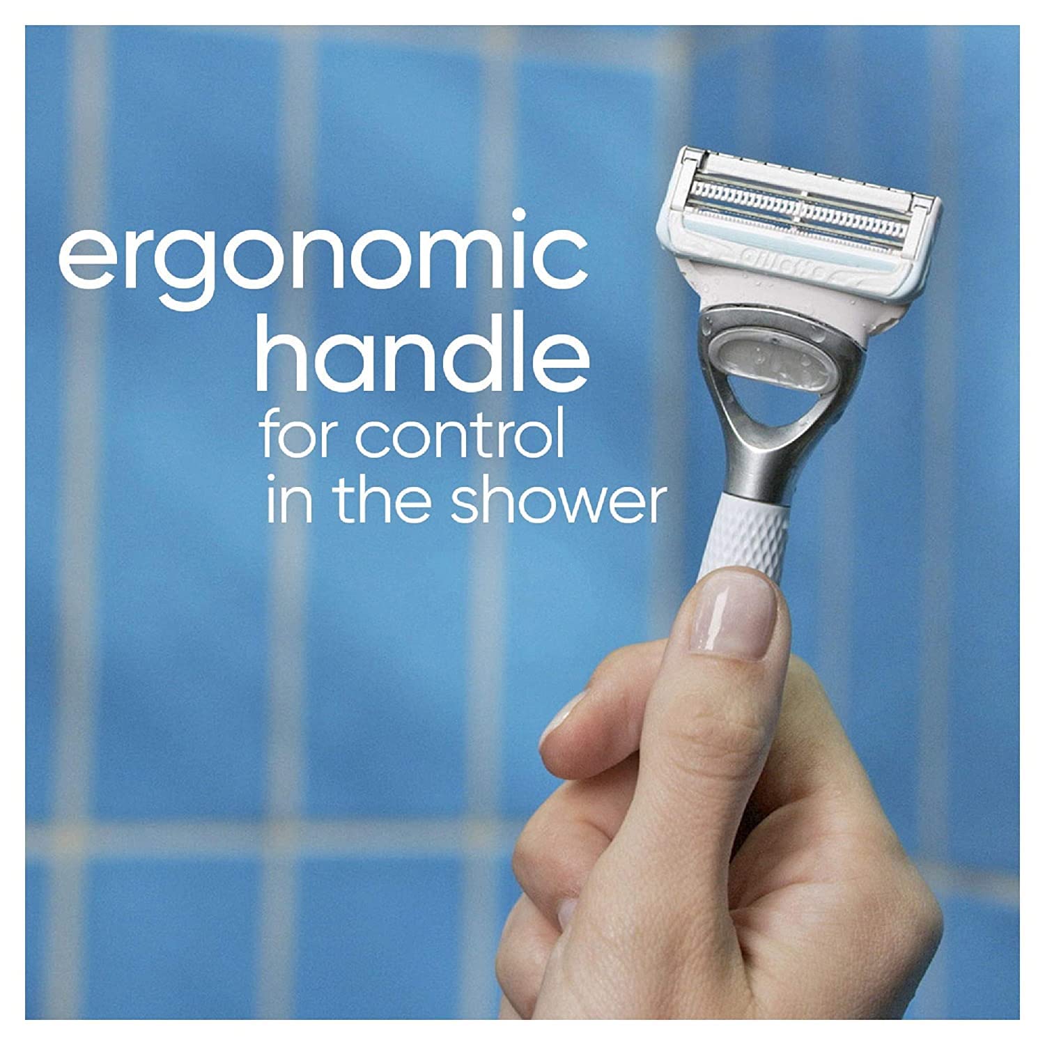 Venus's pubic hair and skin blades are specifically designed to help protect pubic skin from shave irritation. They have a patented irritation defense bar and optimally spaced blades that allow the blades to cut hair while barely touching the skin. Also, the razor refills come equipped with a precision Trimmer on the back of the blades to help with tricky areas.