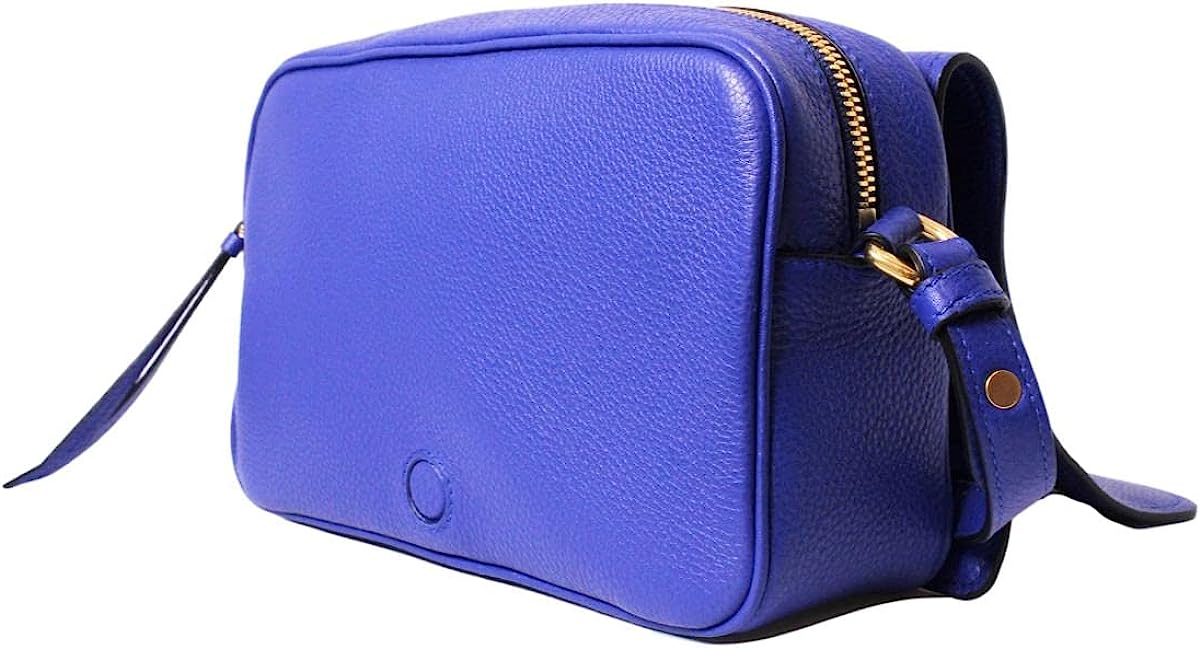 Color: Royal Blue. Material: Calf Leather. Gold-tone Hardware. Magnetic flap fastening. Zipper fastening. Interior black jacquard lining. One interior slip pocket.